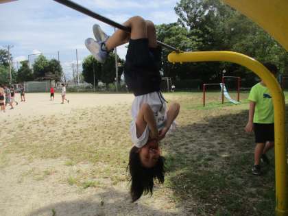 鬼ごっこから逃げたり、鉄棒にぶら下がったり、いのちの森へ観察に行ったりと・・・。