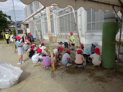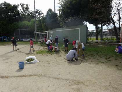 全校草引きがありました。どの学年も草ひきや石拾いに一生懸命頑張っていました。