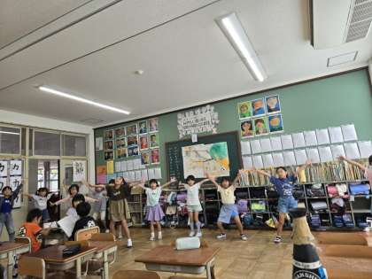 4時間目の体育で練習したダンス。お昼休みにはさっそくたくさんの子たちが自主練を始めていました。頑張り屋さんの3年生。本番が今から楽しみです!!