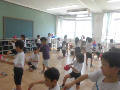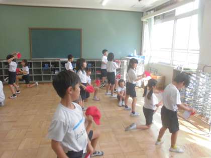 今日は順番を並び変えて、隊形移動の練習をしました。