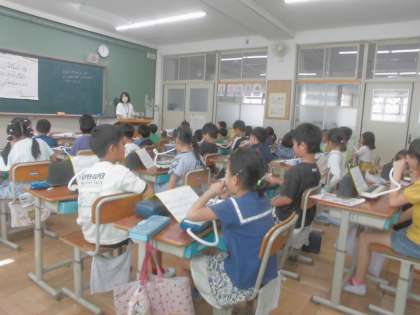けんばんハーモニカを使って、「すいかのめいさんち」の曲を演奏しました。
