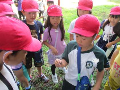 先日いのちの森に行き,バッタやカマキリダンゴムシなど自分の育てたい生き物をグループに分かれて探しに行きました。