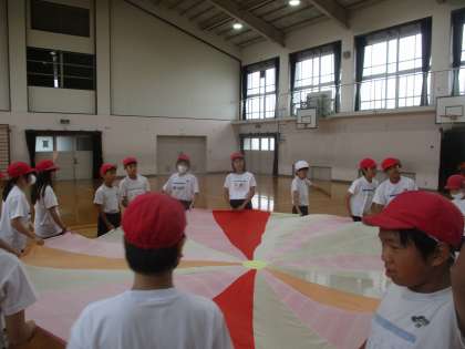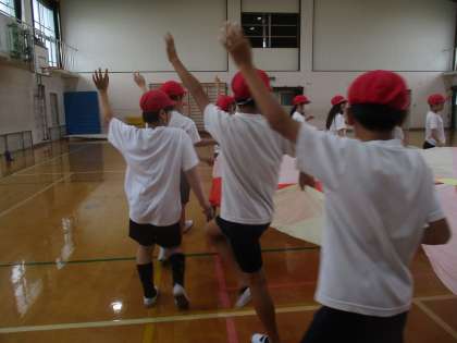 音楽に合わせて、動いていきます。音楽に合わせて動けるところは、さすが6年生です。1回の練習でしたが、本番でも楽しくできそうです。