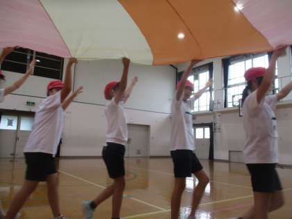 来週10日のママチャイルドでするパラバルーンの練習を行いました。