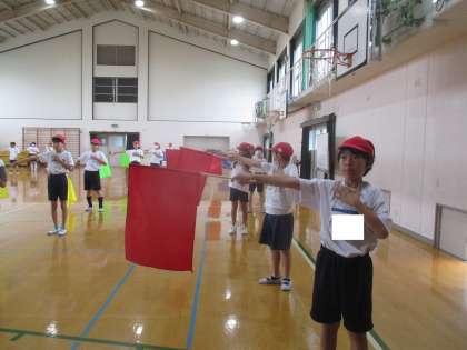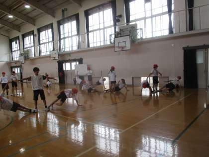 フラッグダンスと二人以上の技の練習をしました。人数が増えていくごとに、友だちと息を合わせていかないと演技が上手にできません。