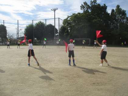 今日は運動場で自分の立ち位置を確認したり、移動の練習をしたりしました。