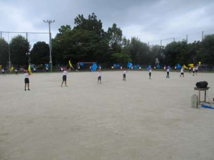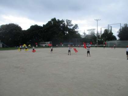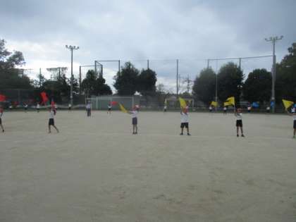 運動会に向けて、運動場でフラッグを持って隊形移動の練習をしました。始めは戸惑っている人もたくさんいましたが、何回か練習していくうちにだんだん覚えられてきました。もうすぐ運動会なので、みんな張り切ってがんばっています。