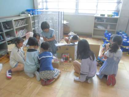今日は2年生同士で、お店屋さんとお客さんになってそれぞれの役割で活動をしました。