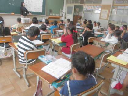 八分休符や八分音符の意味や書き方を学習し、その音符を使ったリズムをみんなで確かめました。