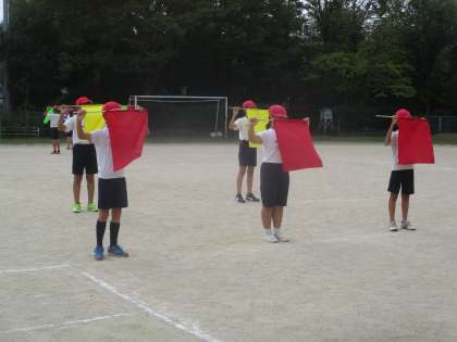 今日は、100m走の練習や表現運動を練習しました。本番にむけて、どんどん上手になってきています。気持ちも少しずつ盛り上がってきています。「協力し、友だちを信じることで技が成功する。」というふりかえりもあり、表現運動を通しての気づきに成長を感じています。