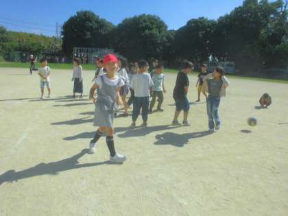 気持ちよい気候の中、走ったりボールを投げたりと元気に遊びました。