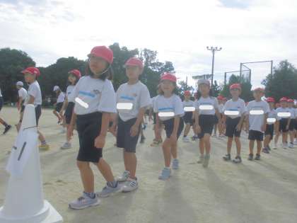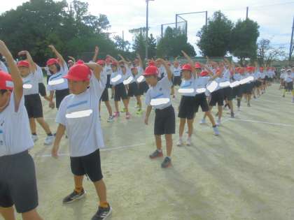準備体操では、運動委員の子たちに合わせて体を動かしました。