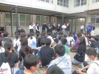 25日金曜日に大原野中学校へ行きました。中学校の授業や部活動を体験しました。活気のある生徒会の進行のもと、制服の紹介をしてもらいました。各授業に分かれて授業も受けました。事前にどの授業に行きたいのか決めていました。大原野小学校の友だちとも仲良くなれる場面もあり、とても楽しかったと言っていました。