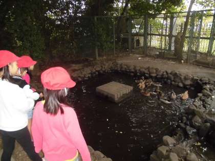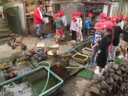 上里小のどうぶつ村にいるアイガモとの「なかよし大作戦」です。