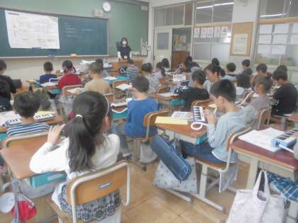 待っている間に、これまで学習した曲をけんばんハーモニカで練習したり、音楽に合わせてリズム打ちをしたりしました。