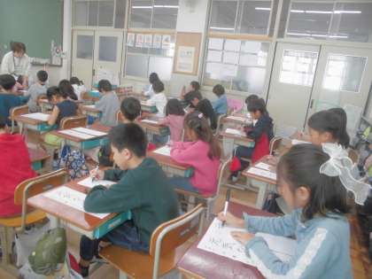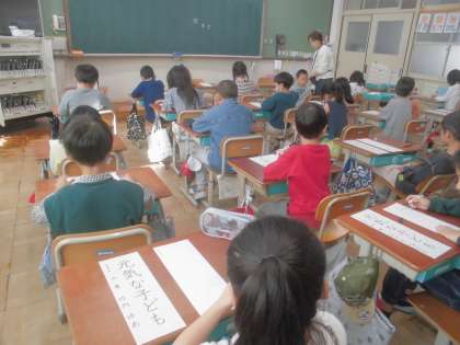 フェルトペンを使って、「元気な子ども」の字を書きました。