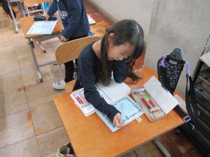 自分の絵で精いっぱいだった子供たちは,改めて他のお友達の作品を見て良いところを発見していました。