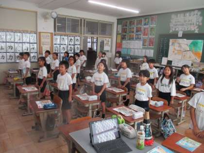 久しぶりにエマ先生と外国語の学習をしました。子どもたちは、エマ先生が来てくれたことに大喜びでした。アルファベットの発音も上手にできるようになってきました。