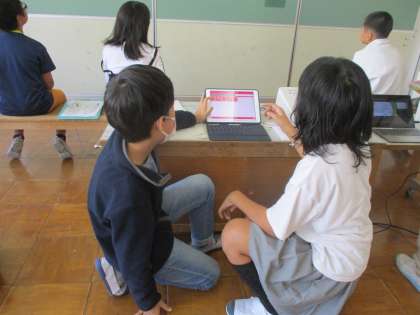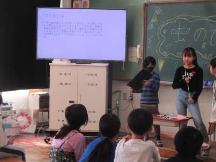 自分たちで育ててきたお米についての学習を4年生に対して説明しました。