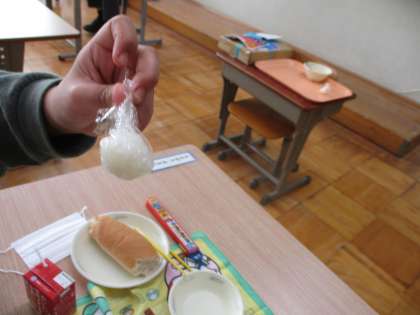 また、給食時間には、自分たちで育てたお米を炊いてもらい、食することもできました。