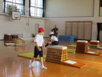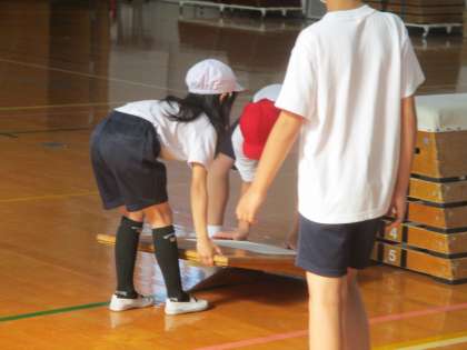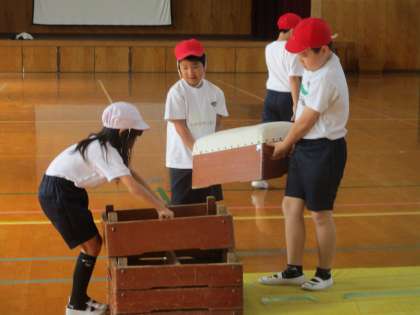 今日の自立の時間は、自分たちでとび箱を用意して体を動かしました。