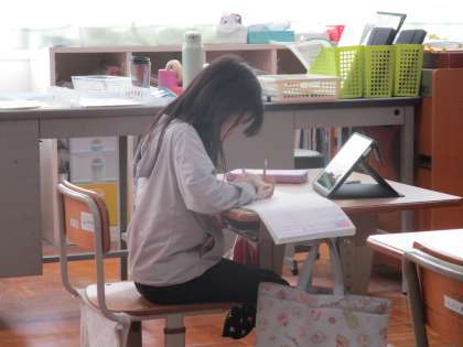今日のチャレンジタイムで、とても良い姿勢でドリルに取組む子ども達。