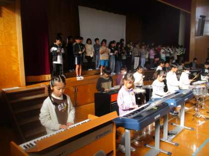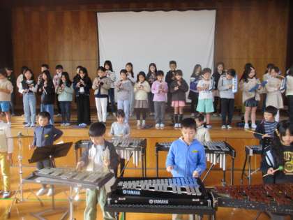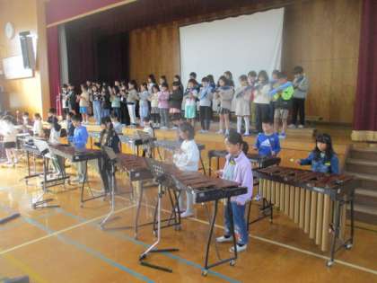 音楽発表会に向けて、学年での練習が始まりました。この日は、だれがどこに立つのかを決めて、合奏の練習をしました。本番が楽しみです。
