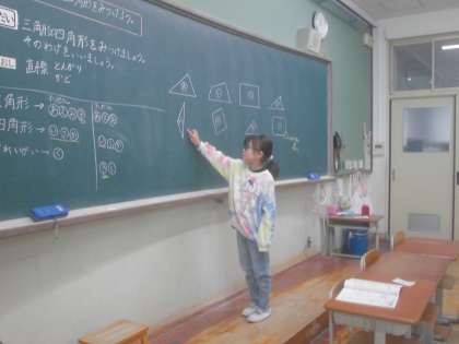 それらの形が「三角形」「四角形」ということを覚え、特徴についても確認をしました。