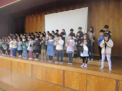 音楽発表会で話す言葉を誰がどこを言うのかを決めました。その後、「とどけよう この夢を」の時のパート分けや立ち位置を決めて、練習をしました。初めて学年で合わせるので、まだ合わないところもありました。この後、何回か練習を重ねていくとみんなの呼吸があってくると思います。