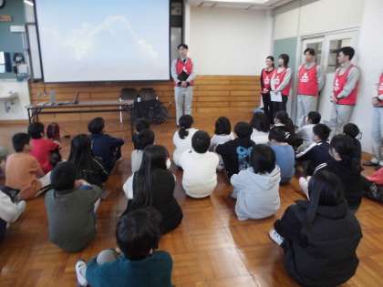 「環境と人にやさしいクルマづくり〜SDGs〜」というテーマで三菱自動車の方々に出前授業をしていただきました。ガソリン車と電気自動車の乗り比べをしたり、リサイクルクイズに答えたりと、環境のことを考えた自動車生産について学ぶことができるとても有意義な機会となりました。