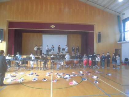 体育館で練習をしました。合奏の練習ではそれぞれの楽器を聞きながら演奏をしました。
