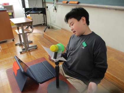 今日の音楽の時間には、自分のおすすめの曲を友だちに紹介する鑑賞の授業を行いました。