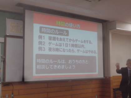 講師の方に来てもらって、スマホについての学習をしました。実際に起きた事例をもとに学習しました。またお家でも話してもらえたらと思います。