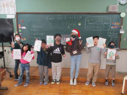 全員たくさんのオーナメントを集めて、素敵なクリスマスカードを作ることができました。