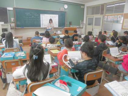 「よろこびのうた」のけんばんハーモニカを練習しました。