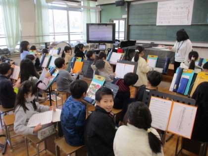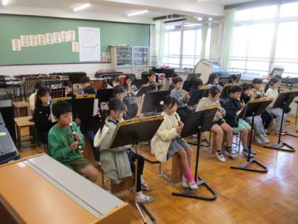 音楽発表会も終わり、音楽では次の学習に取り組んでいます。この日は、リズム遊びをしてから「メリーさんのひつじ」をリコーダーで吹く練習をしました。