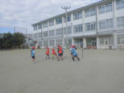 パスをもらう人は投げる人に声をかけながら、ゴールにつなげることができていました。