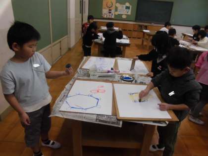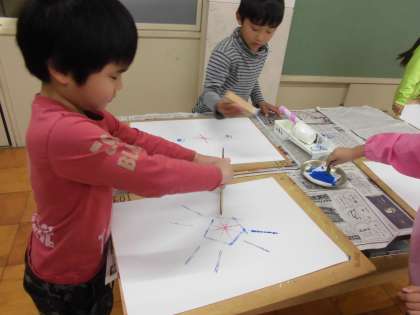 写した形から想像を広げて、スタンプするのを楽しんでいました。