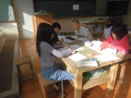 赤、黄など色を選び、作った版で写していきました。