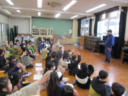 学校で避難訓練があり、消防署の方にも来ていただき避難訓練の様子を見ていただきました。