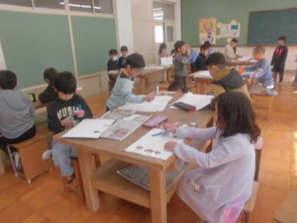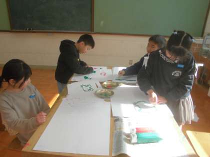型紙を使って型を写したり、切った周りの紙で中に型を作ったりしました。