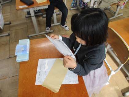 など、おうちの人に感謝する姿が見られました。最後には、サプライズでおうちの人からのお手紙を渡しました。