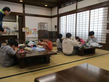また、今日は久しぶりに囲炉裏の間での給食でした。