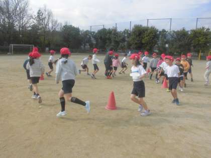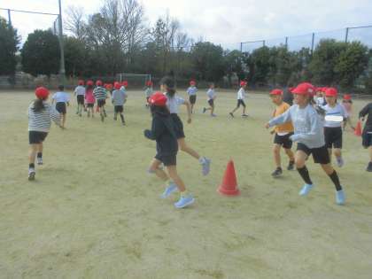 自分たちの走りたいペースを考えながら、コーンを回りました。