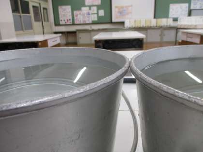 「ペットボトル5つ分のバケツとペットボトル4つ分のバケツ。どっちが多い?正解は4つの方です。」