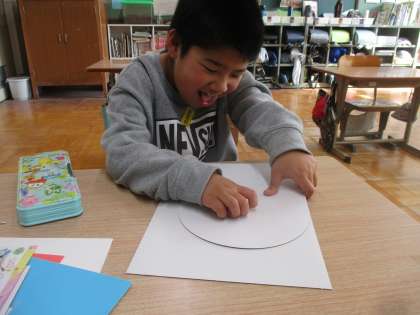 わりピンを刺すことにも苦戦していましたが、画用紙の穴を重ねてピンを刺すコツを学んで、最後には自分で上手にピンを刺すことができていました。