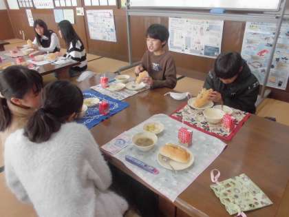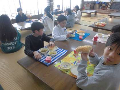 いろりの間で給食を食べました。みんなで食べるとおいしいです。4時間目は、鈴木先生から「フードロス」について学びました。年間でものすごい量の食べ物は廃棄している事実に子どもたちも驚くとともに、これからの未来のことも考えていました。