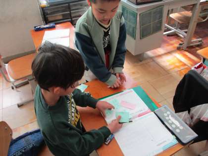 道徳では、「あなたってどんな人?」という単元で自分を振り返り、隣の友達の良いところを付箋にたくさん書くことができました。自分では気づけていなかった自分のよいところを友達に見つけてもらいとても嬉しそうでした。