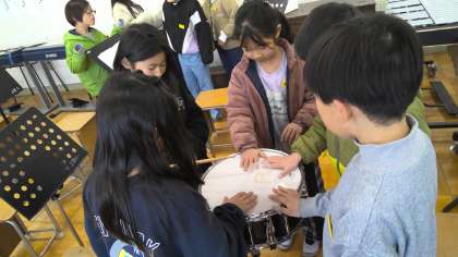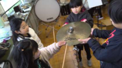 音が出ているときには,楽器などがどのような様子なのかを音楽室で調べました。