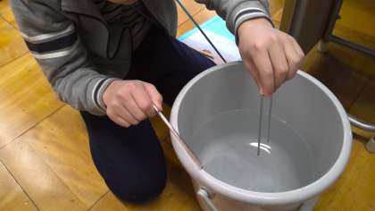 ふるえているかを確かめるために,触ってみたり,ビーズを置いてみたり,水面を見てみたりしました。